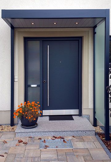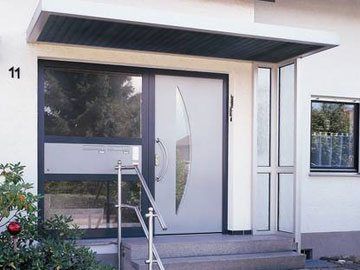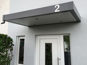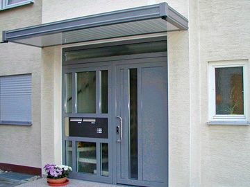 Das Flachdach ist bei Kopplungen und Verlängerungen ideal. Ab 4m² Dachflächengröße bzw. 1,3 m Tiefe müssen aus statischen Gründen mindestens 2 Vordachsäulen verwendet werden.