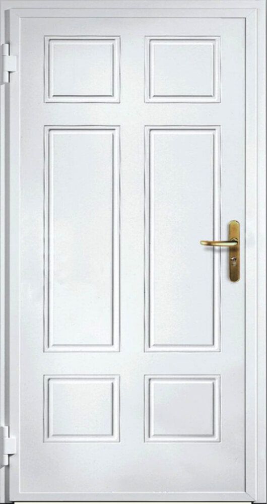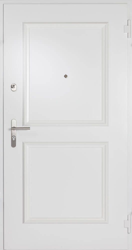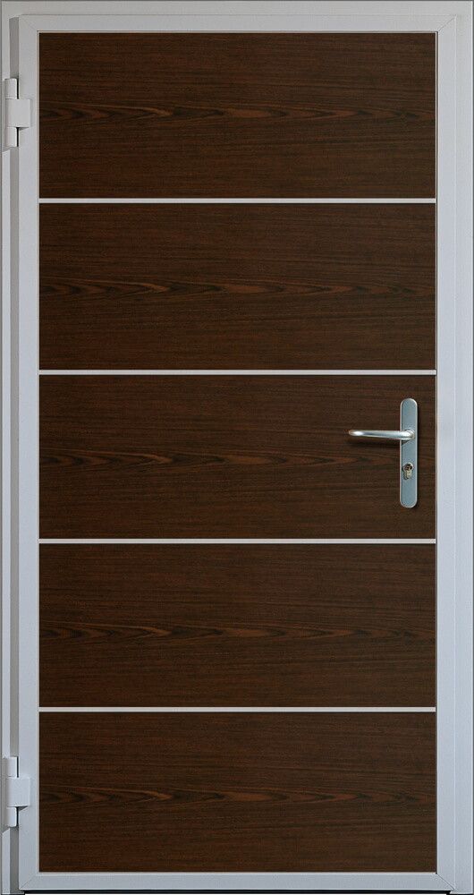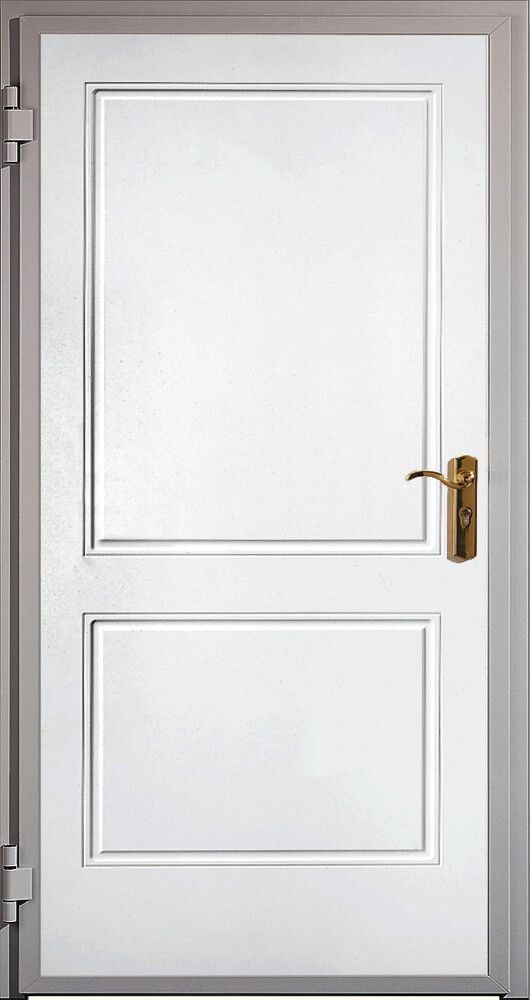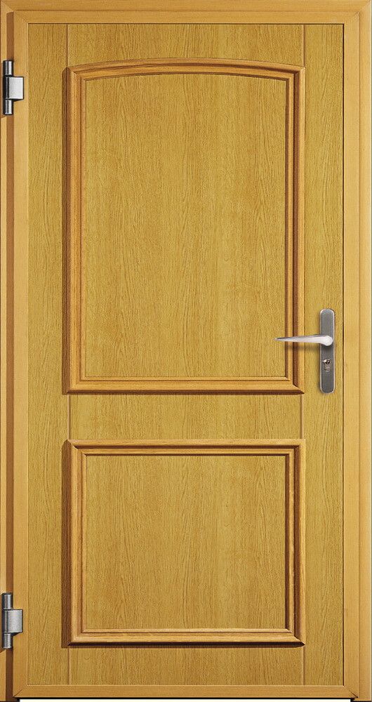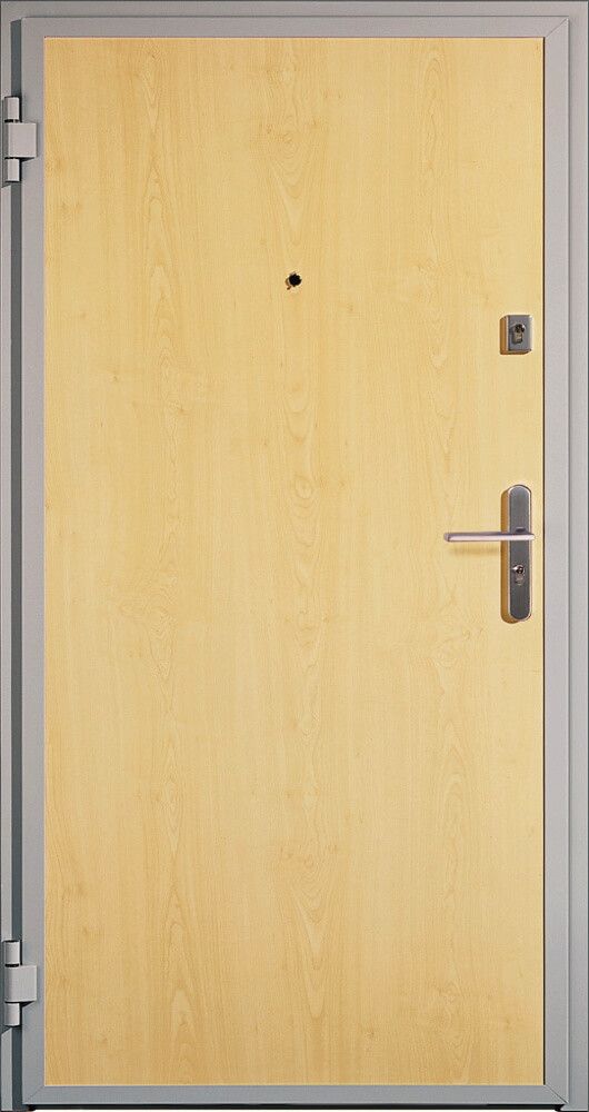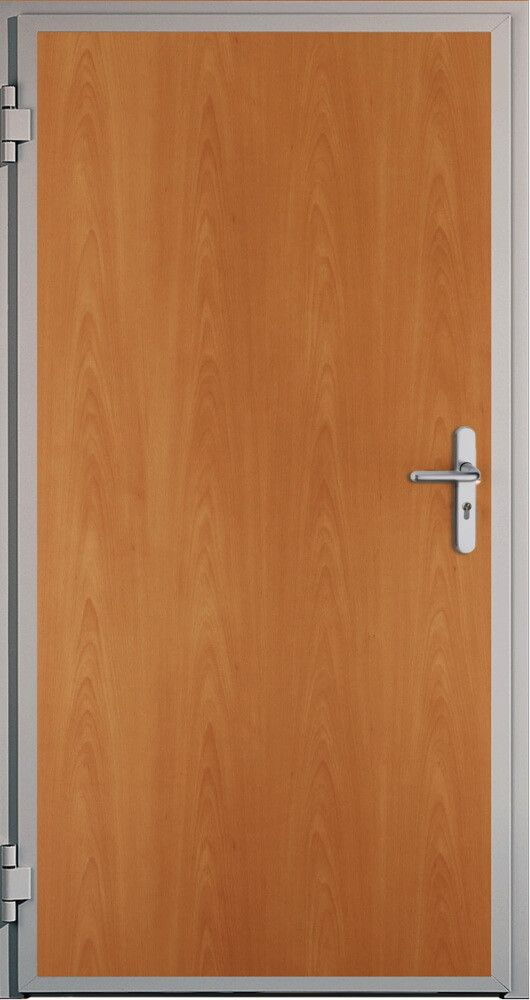 Das Türblatt, das im Kern aus blockverleimtem Holz gefertigt ist, ist in einem stabilen Funktionsrahmen gefasst, in dem alle funktionalen und sicherheitsrelevanten Details wie Schwenkriegelschloss mit Sicherheitsblockiersystem, Fallensperre und Sperrbügelschloss enthalten sind.