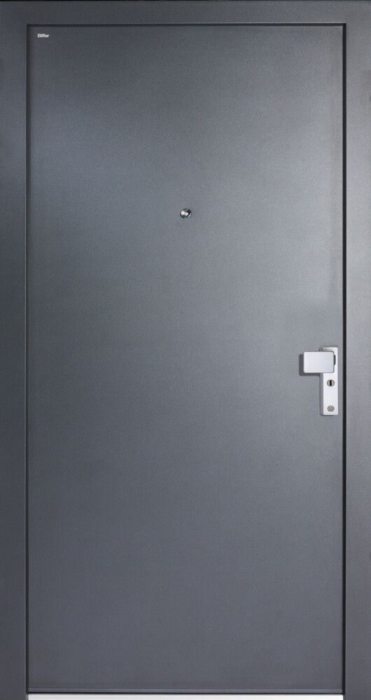 Das Außendekor der Wohnungseingangstür fügt sich in die Formen und Farben des Treppenhauses ein. Biffar stattet diese Tür auf Wunsch mit geprüftem Brand-, Rauch- und Schallschutz aus. So kann man auch alle Vorteile genießen und muss keine Kompromisse eingehen.